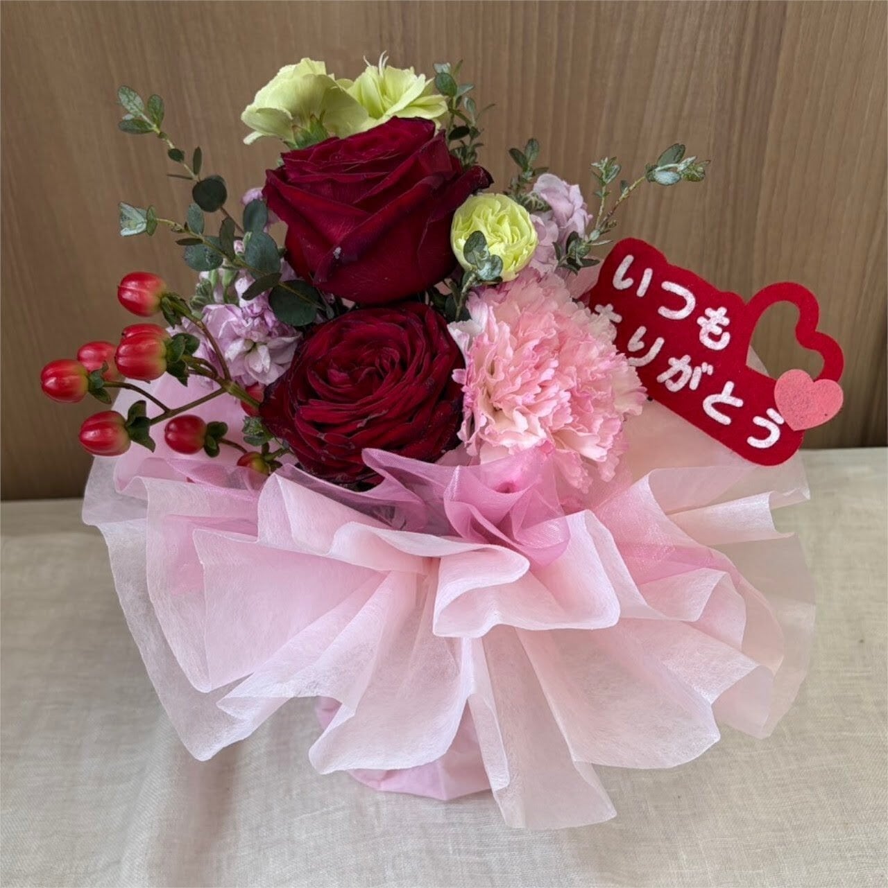 母の日限定 店舗受取【立つ花束 ふりふりドレス】