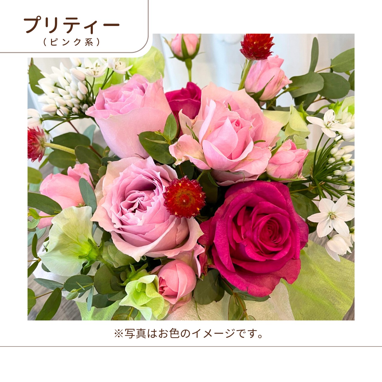 受け取る方のイメージに合わせたお色でアレンジメントをお作りします。