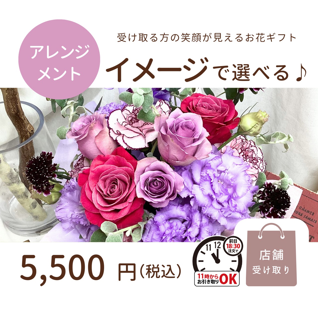 ※アレンジメントは、18時30分までのご注文で